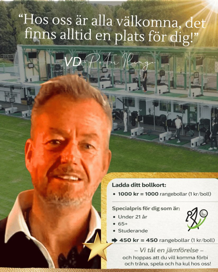 Du tränar i världens skarpaste bolltrackingsyatem från Inrange. Hos oss är alla välkomna oavsett vilken nivå, från nybörjare till satsande golfaren – vi värdesätter trivsel & gemenskap.